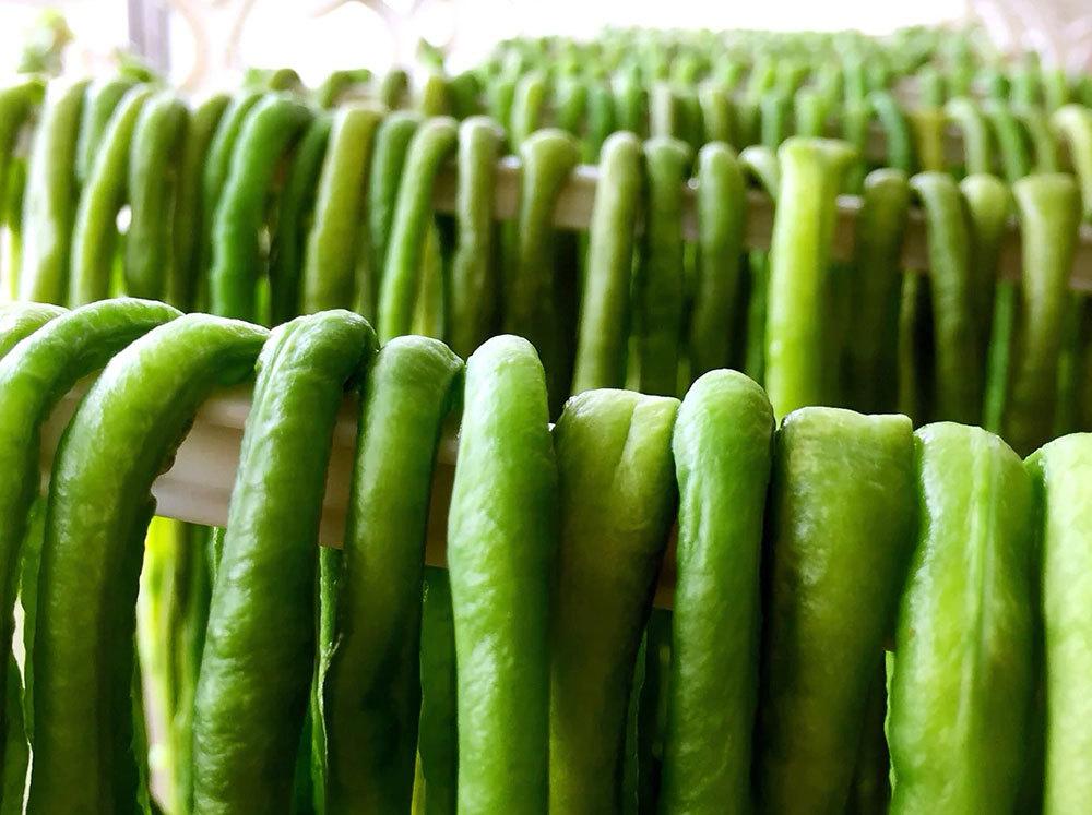 豇豆角、小油菜、茄子、南瓜都可以进行晾晒,“晒秋”有极强的地方特色,尤其在山区生活的村民,自古就有这个传统,屋顶有晾晒架,方便挂晒农作物等。