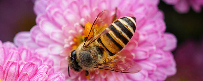 蜜蜂的特点就是可以采蜜,成年蜜蜂体长大概是十五毫米,头和胸部几乎是一样的宽度,后足是携粉足,前翅比较大,而后翅却比较小。在经过卵、幼虫、蛹、成虫这四个阶段之后就可以成为一只完整的蜜蜂。