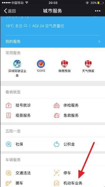 3、点击“机动车业务”。