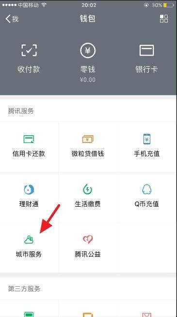 2、点击“城市服务”。